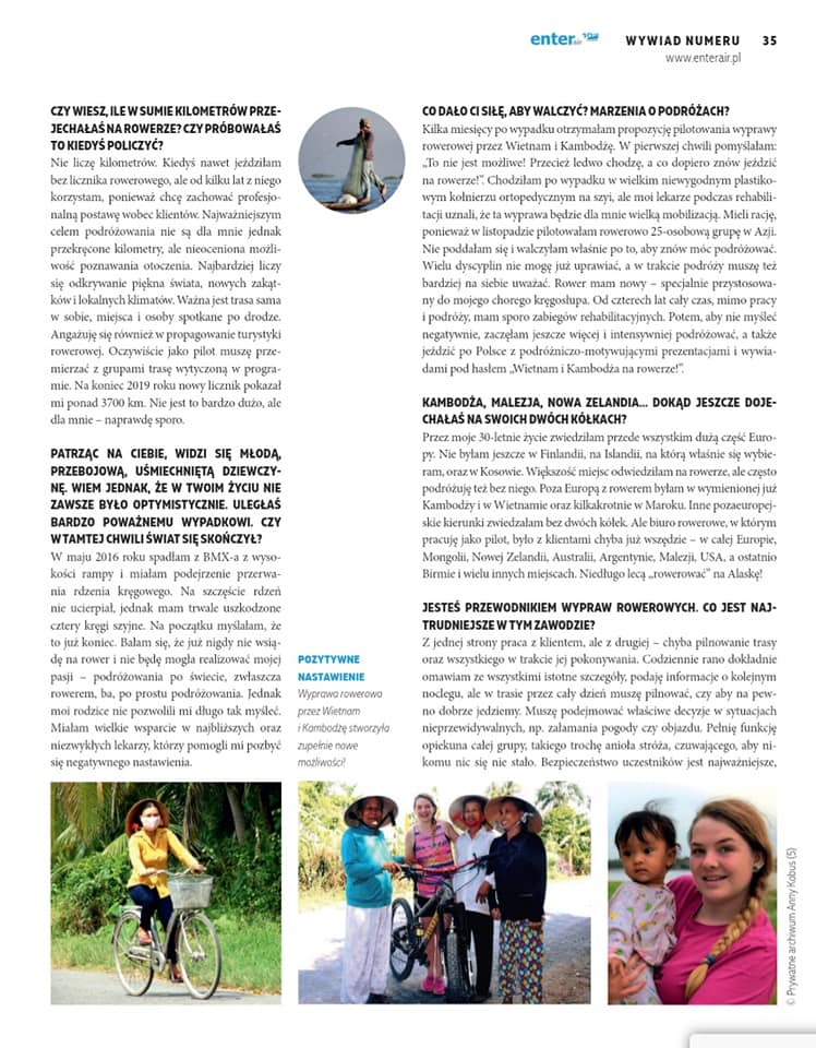 W listopadzie 2016 roku pilotowałam z naszym biurem podróży www.wyprawyrowerowe.pl najważniejszą dla mnie podróż po Wietnamie i Kambodży. Byłam wtedy pierwszy raz w Azji, ale też pierwszy raz po wypadku na bmxie. Wtedy zaczęłam prowadzić swoje social media. Na początku głównie dla siebie i znajomych. Po powrocie dostałam pierwszą propozycję prelekcji podróżniczej i dzięki temu już kilkanaście razy miałam okazję opowiadać o naszej pasji podróżowania w wielu miastach w Polsce. Dzięki social mediom zaczęłam współpracować z wieloma firmami. Udzielam wywiadów dla stacji radiowych, dla telewizji, a nawet magazynów podróżniczych. W każdą współpracę, czy każdy wywiad wkładam dużo serca. Zależy mi, by zarówno klient jak i odbiorcy byli zadowoleni z tego co robię. Kilkukrotnie uczestniczyłam też w Study Tourach w Hiszpanii i we Włoszech na zaproszenie organizacji turystycznych. Mogę zrealizować kampanie nie tylko z Polski, ale i z innych zakątków świata. Jestem otwarta na wszelkie propozycje współpracy zgodne z moim sercem. Swoje współprace mogę zrealizować na koncie klienta, na swoim instagramie, TikToku, Facebooku, lub tutaj na stronie. Mogę poprowadzić prelekcje, czy warsztaty w każdym mieście Polski.